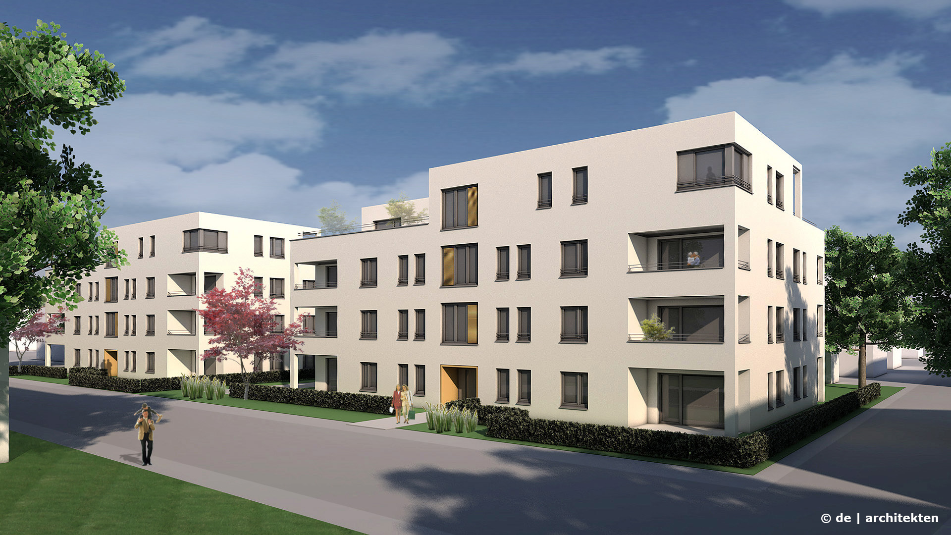 Hier schaffen wir für unsere Mitglieder einen Wohnungsmix, welcher sich auf 3 Einzimmer-, 3 Zweizimmer-, 22 Dreizimmer- und 3 Vierzimmerwohnungen, mit Wohnungsgrößen zwischen 30 m² und 100 m² verteilt. Jedes Haus ist mit einem Aufzug ausgestattet und in der gemeinsamen Tiefgarage werden 26 Stellplätze zur Anmietung zur Verfügung stehen.